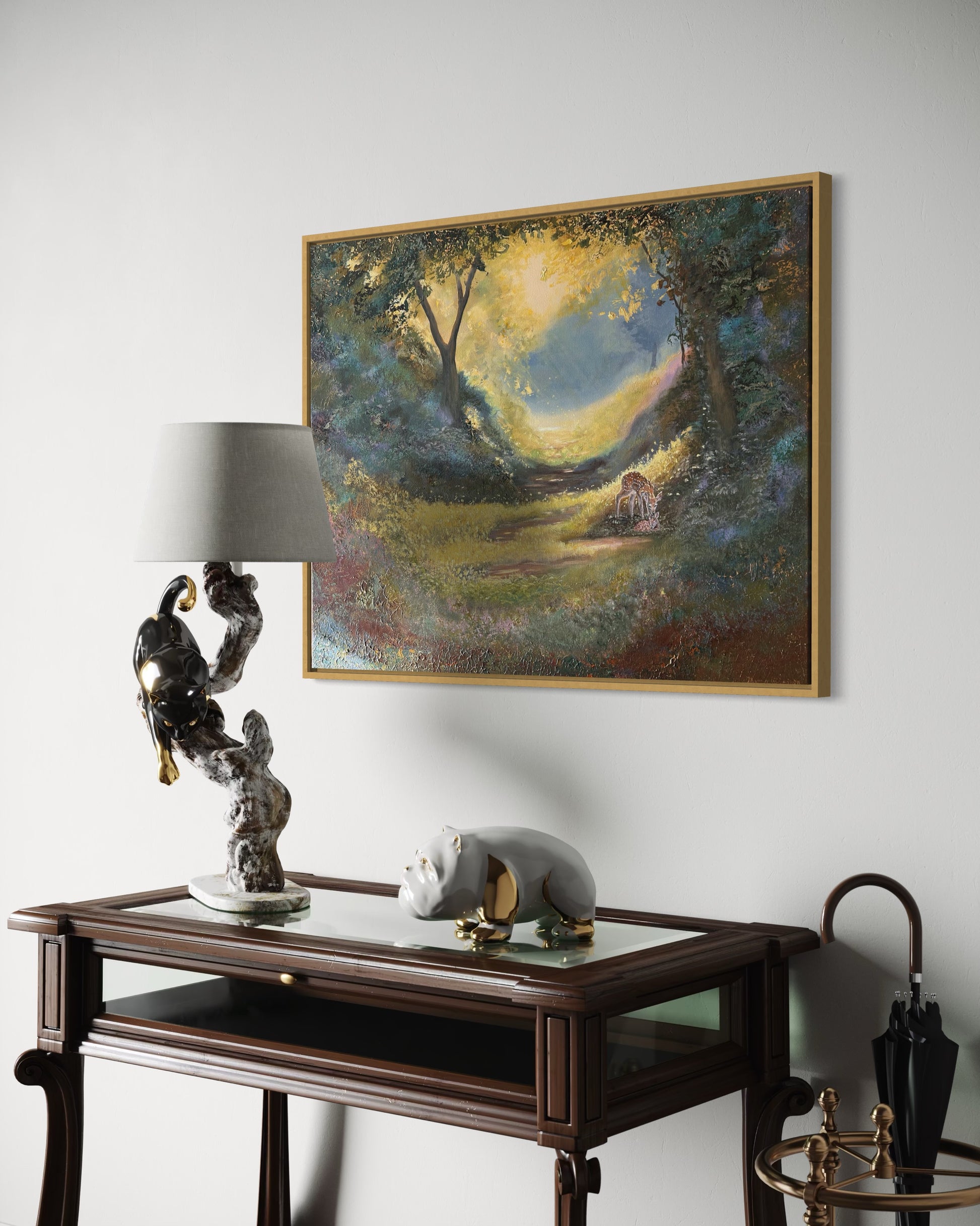 Ei kehyksiä tarvita! Näyttää kauniilta sellaisenaan. Signeerattu etu- ja takapuolella, ja reunat ovat maalattu kullanvärisiksi.