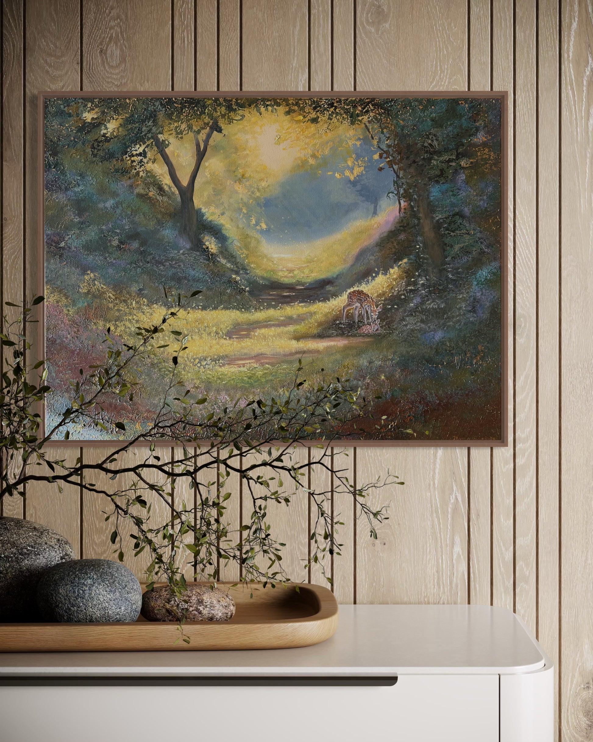 Metsän syleilyssä, missä valo tanssii pehmeästi puiden latvoissa, äiti ja hänen pienokaisensa löytävät rauhan. Metsä on täynnä huolenpitoa, kietoo heidät hellyyteen ja rakkauteen. Pyhä side maailmassa, joka pitää heitä hellästi sylissä.